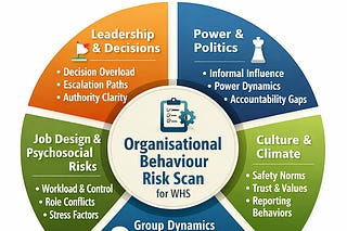 This one‑page scan translates organisational behaviour theory into a practical diagnostic tool for WHS audits and early engagement sessions.