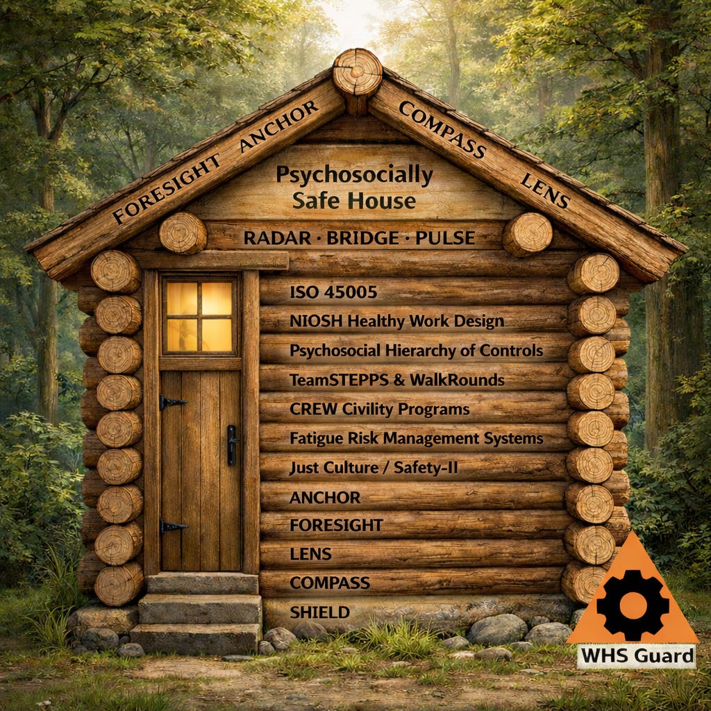 ISO 45003 Control Families: Embedding psychosocial risk into policies, consultation, and performance monitoring (ISO, 2021).
